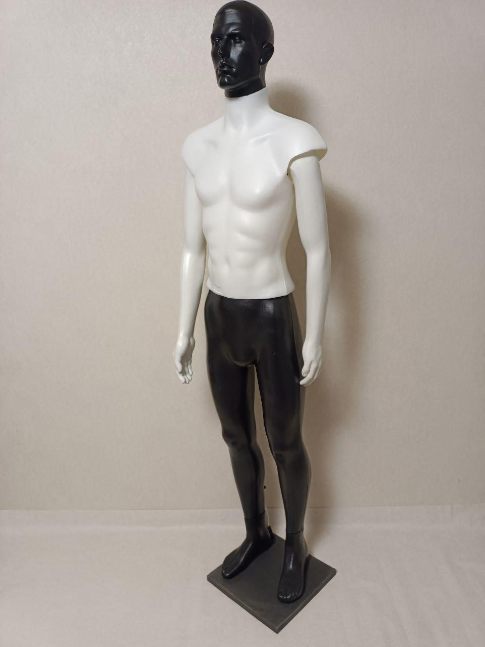 Манекен чоловічий з чорною головою білим торсом та чорними ногами (на ПВХ плиті)